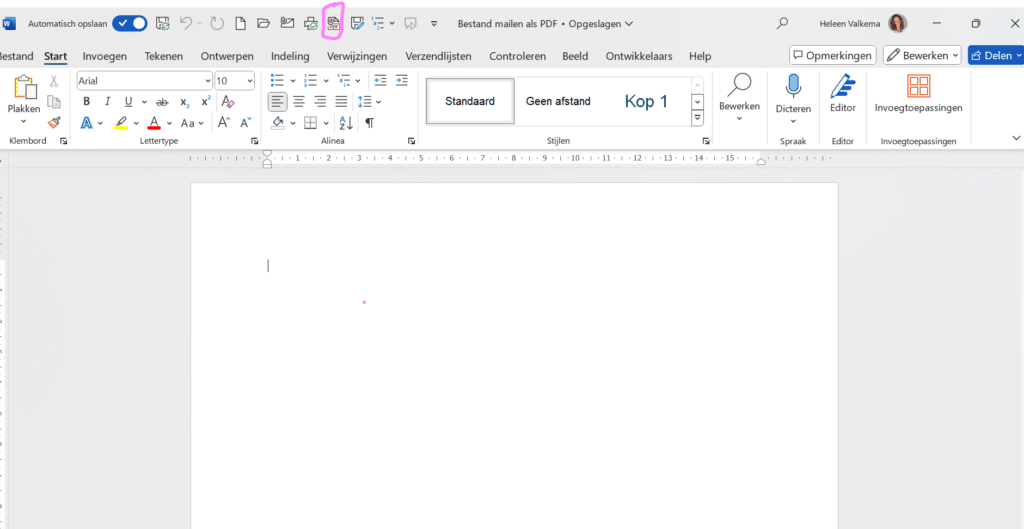 - In Word heb je helemaal bovenin de Werkbalk Snelle Toegang.